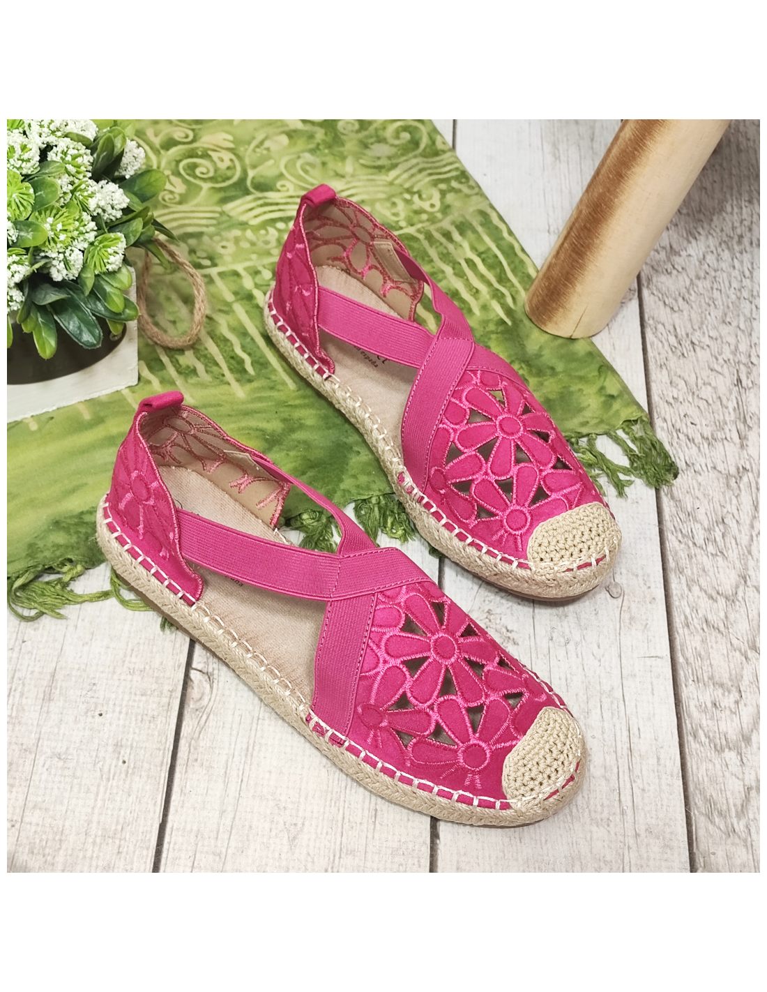 Espadryle damskie ażurowe z gumkami XY19-2/FUSIA