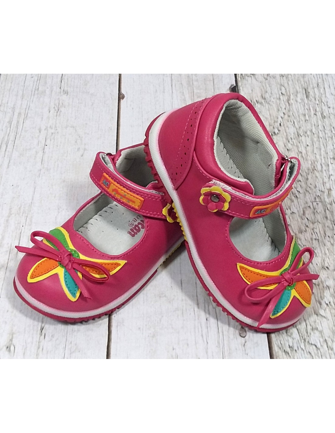 Urocze balerinki w najmodniejszym kolorze tego sezonu. Profilowana wkładka ze skóry naturalnej, miękka ekologiczna skóra cholewki, wygodne zapięcie na rzep i usztywniana piętka. Ciekawy, niebanalny design. Stylizowany motylek w kontrastowym kolorze przyciągnie wszystkie spojrzenia.