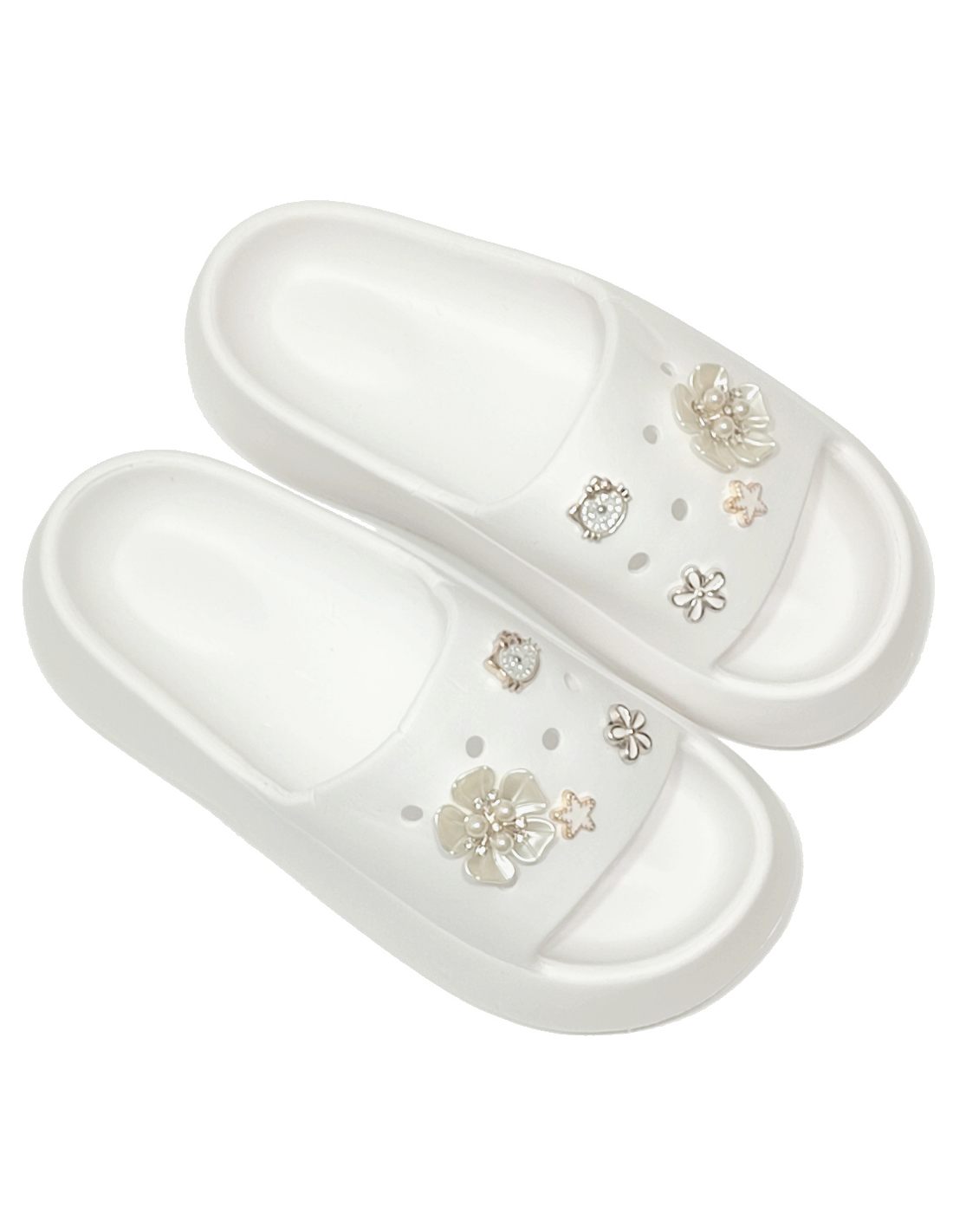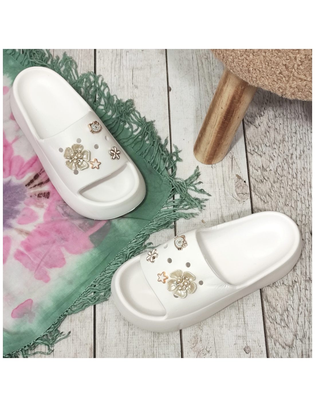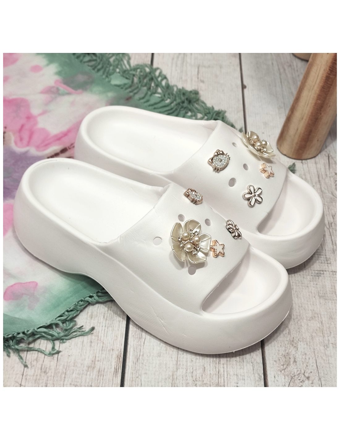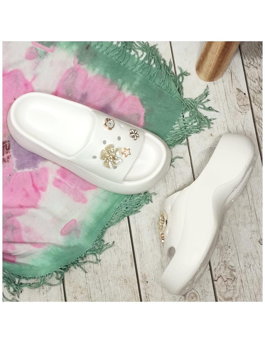 Białe lekkie piankowe klapki damskie biżuteryjne SD9059-2