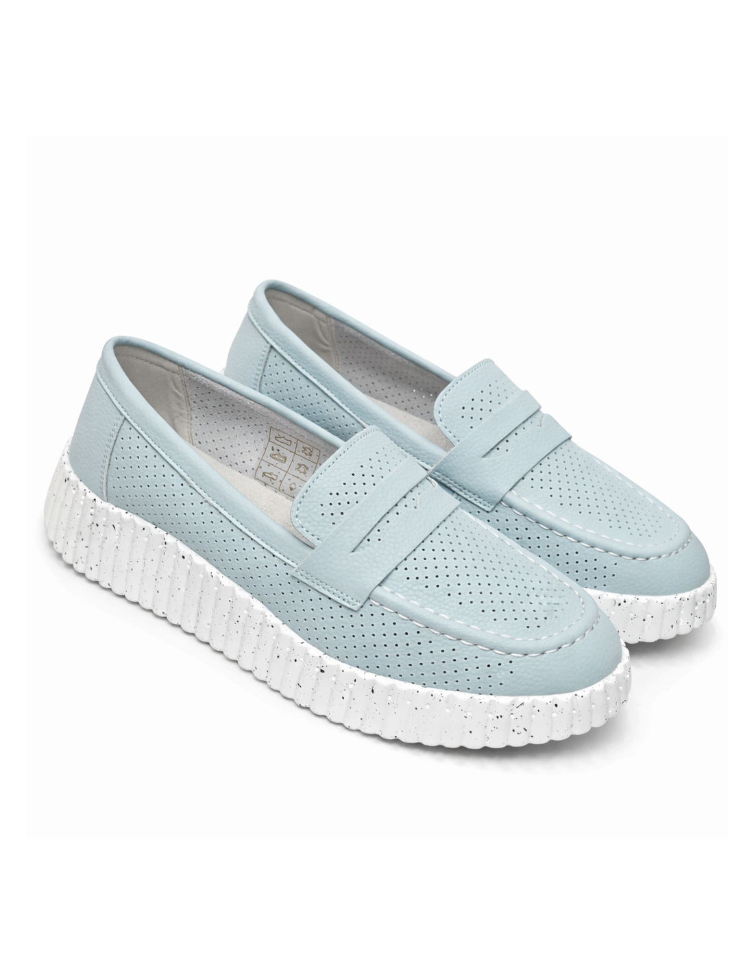 Słowa kluczowe: loafersy damskie skórzane, ażurowe mokasyny baby blue, buty letnie skóra naturalna, mokasyny na platformie, loafersy z miękką skórzaną wkładką