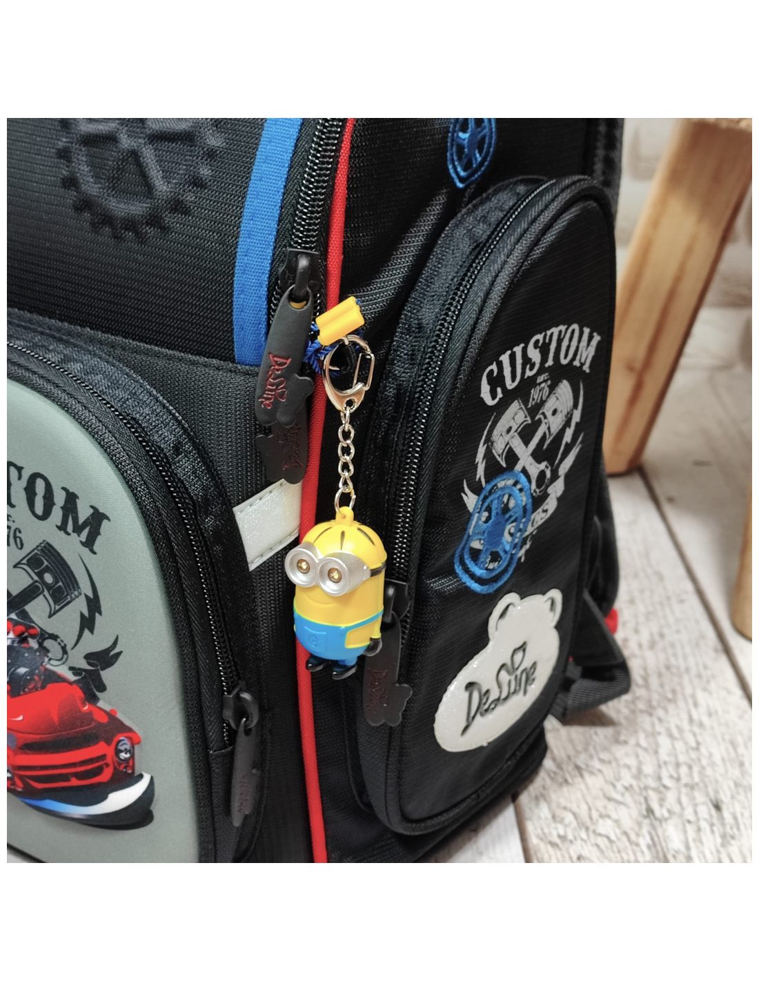 Wygodny plecak chłopięcy stworzony z myślą o najmłodszych uczniach. Doskonałej jakości materiały i bardzo staranne wykonanie. Usztywniany co zapewni ochronę przedmiotów znajdujących się w środku. Plecak ma jedną dużą komorę z organizerami pomagającymi utrzymać porządek. Łatwo można w nim wszystko odnaleźć. Ergonomicznie wyprofilowane plecy i system pasków umożliwiają optymalne rozłożenie ciężaru. Zewnętrzne usztywniane boczne kieszonki idealnie nadają się na przechowanie drugiego śniadania. W przedniej kieszonce kieszonki i uchwyty na długopisy. Bardzo dobrym pomysłem jest umieszczony w przedniej kieszonce specjalny karabińczyk do którego przypiąć można ważne kluczyki - na pewno się nie zgubią! Typowo chłopięcy design inspirowany wyścigami samochodowymi. Doskonały wybór dla Twojej Pociechy!