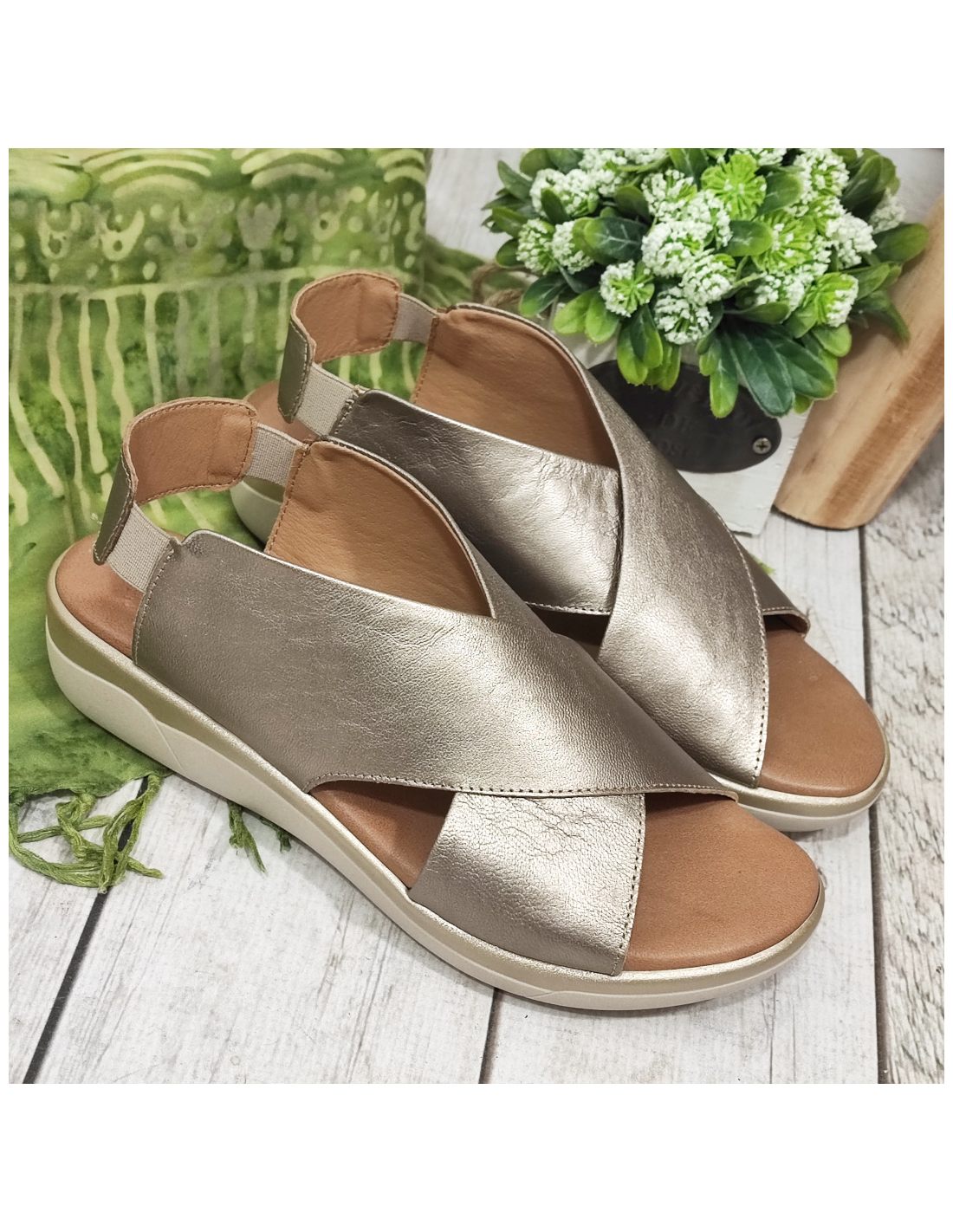 Sandały damskie wsuwane na koturnie skóra naturalna