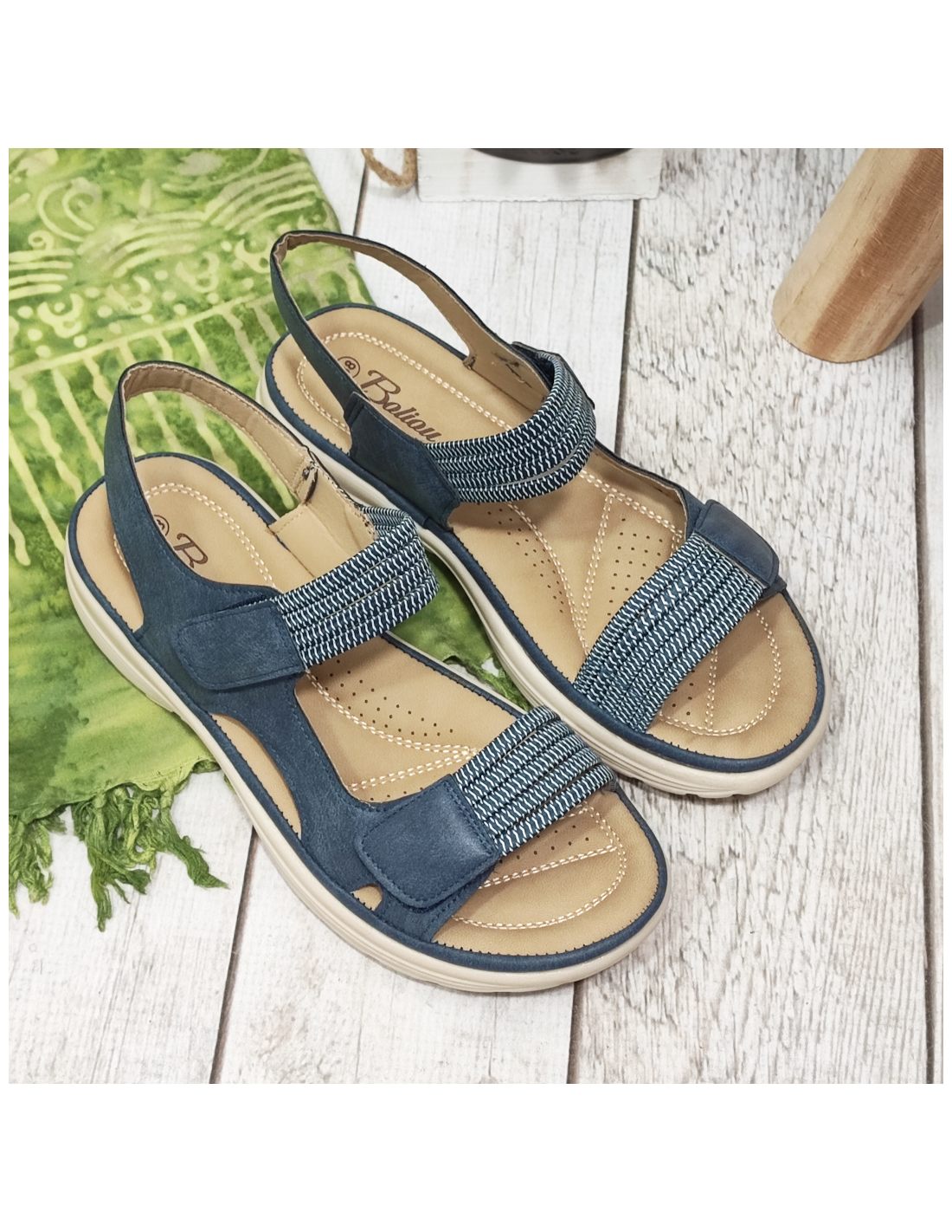 Sportowe sandały damskie z gumkami na rzepy 186/NAVY
