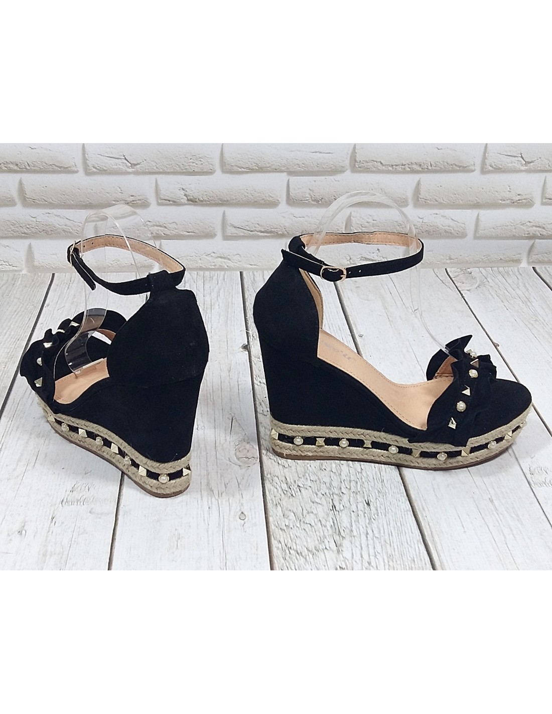 Klasyczny fason ozdobiony ćwiekami i perełkami. Uniwersalna czerń, kobiece detale. Wygodne zapięcie nad kostką sprawia, że model ten dobrze trzyma się nogi.